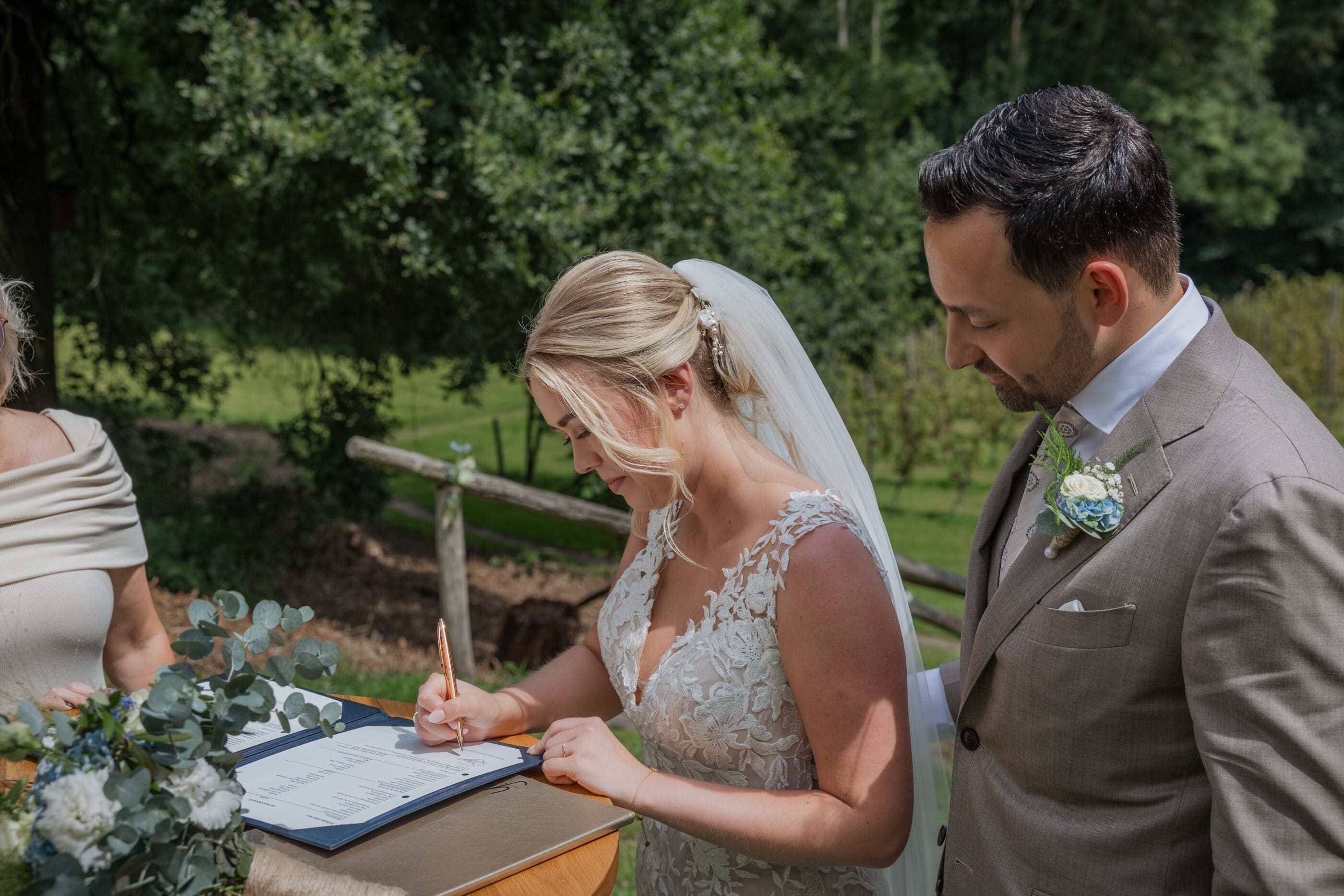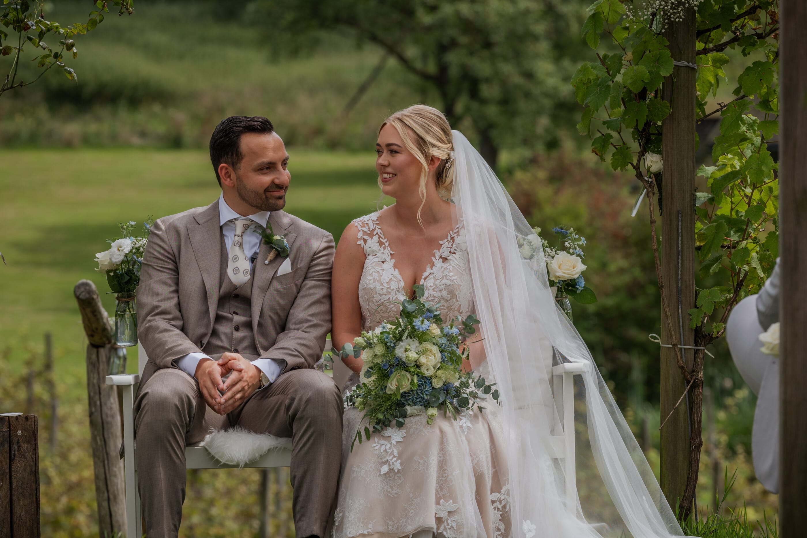 Op een prachtige julidag vond de bijzondere bruiloft van Shabeli en Jim plaats op de sfeervolle locatie van de Winselerhof in Landgraaf. De authentieke 16e-eeuwse herenboerderij, gelegen te midden van een idyllisch landschap, vormde de perfecte achtergrond voor hun grote dag. Het weer werkte perfect mee, waardoor het stel hun droomceremonie buiten onder het prieel kon beleven. Terwijl Shabeli en Jim hun geloften uitwisselden, genoten de gasten van het adembenemende uitzicht op de omliggende wijngaarden. De serene omgeving en het zachte ruisen van de bomen versterkten de romantische sfeer van deze bijzondere dag.