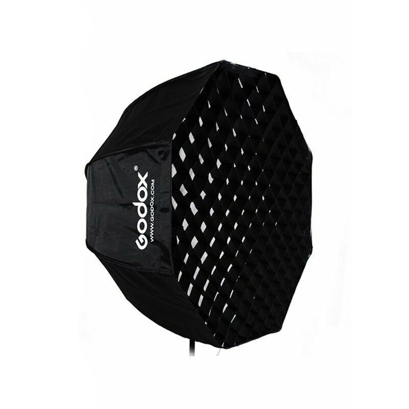 De Godox Paraplu Softbox Universeel met Grid (95cm) is compact mee te nemen, binnen 4 seconden opgezet dankzij het paraplumechanisme en geeft zacht, gelijkmatig licht—ideaal voor bruidsfotografie.